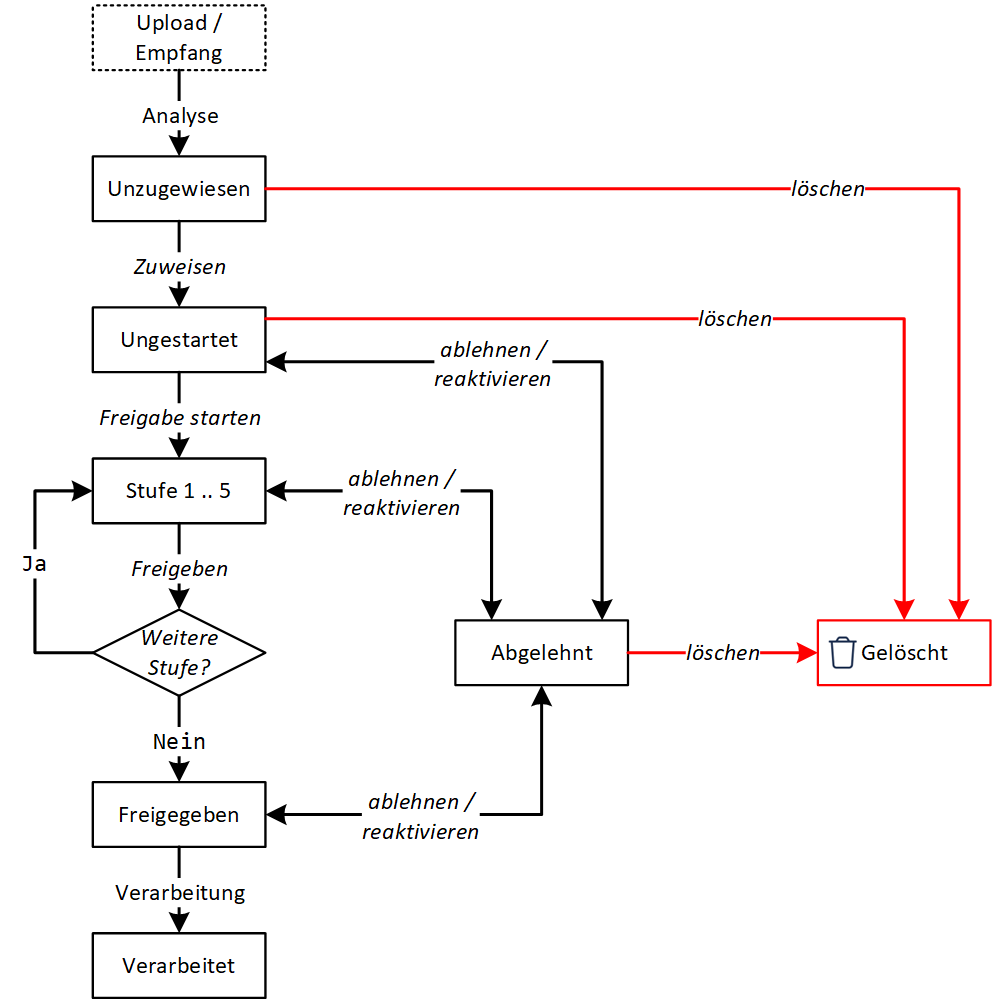 Eingang (ungestartet): Dokumente, für die noch kein Freigabeprozess gestartet wurde.
