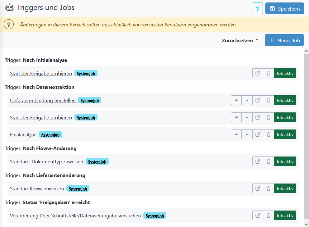 Im Bereich „Triggers und Jobs“ wird die spezifische Konfiguration des “Triggers und Jobs”-Systems für das aktuell gewählte FLOWWER-Unternehmen festgelegt.